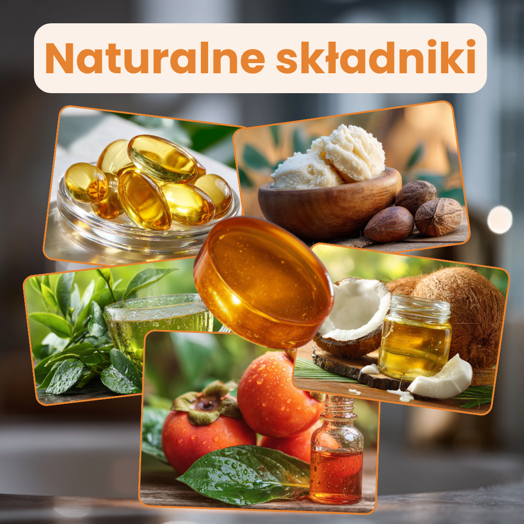Zwykłe mydła działają powierzchownie – myją i chwilowo przykrywają zapach perfumami lub aromatem. Persimmona działa głębiej: neutralizuje źródło zapachu starzenia się skóry (nonenal) dzięki ekstraktowi z persymony. Dodatkowo pielęgnuje skórę naturalnymi składnikami (masło shea, olej kokosowy, zielona herbata), zamiast ją wysuszać jak zwykłe detergenty.