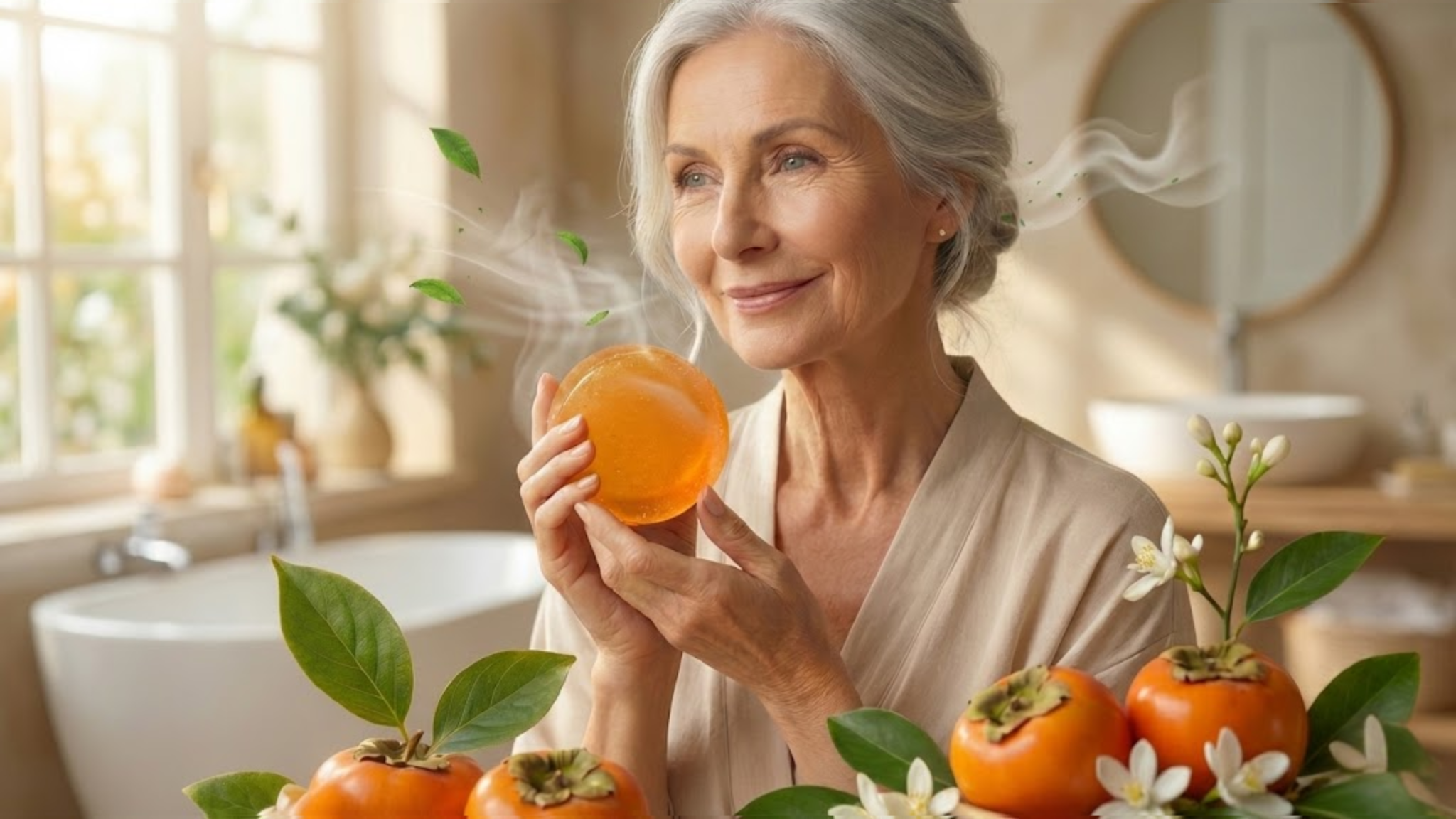 Naturalne mydło z japońskiej persymony skutecznie usuwa nieprzyjemny zapach, także ten związany ze starzeniem się skóry (2-nonenal).